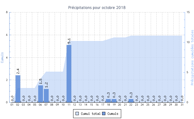 | 01 | 10.3 °C | 16.0 °C | 12.6 °C | 6.9 km/h (23.4 km/h) | NNO |