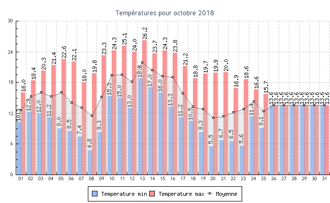 | 30 | 13.6 °C | 13.6 °C | 13.6 °C | 4.4 km/h (7.2 km/h) | NO |